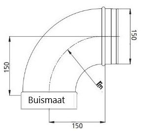 Spiro bocht ∅ 150 mm - 90° - één zijde buismaat
