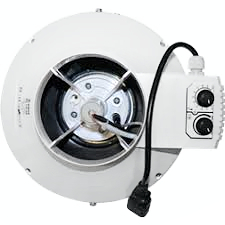 Inline centrifugaalventilator, kunststof behuizing, luchtvolume tot 1700 m3/h, met of zonder ingebouwde thermostaat en regelaar.
