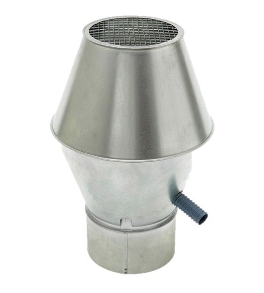 • Voorzien van gaas, regenopvangconus en afvoerpijpje