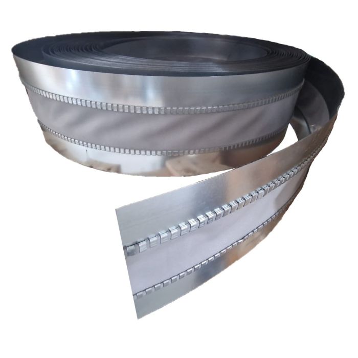 Deze flexibele verbinding wordt geleverd op een rol van 50 meter en heeft een breedte van 15 cm. De twee buitenranden zijn gemaakt van gegalvaniseerd staal, terwijl de tussenlaag bestaat uit flexibel PVC.