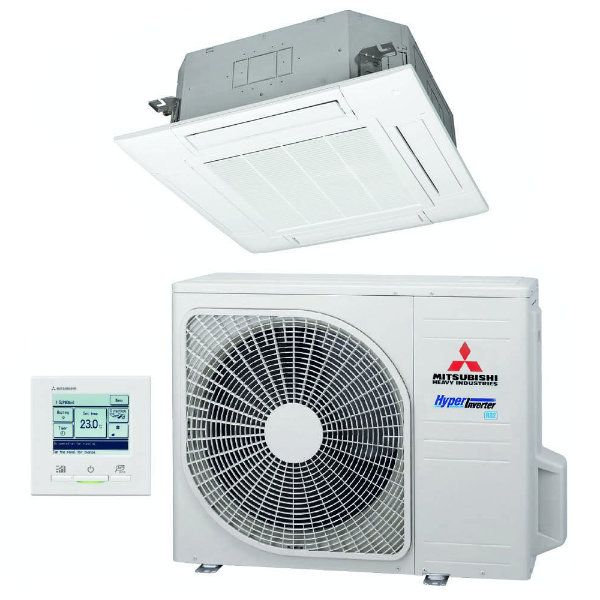 De cassette unit van deze set wordt doorgaans ingebouwd in een verlaagd plafond. Dankzij het moderne en strakke design van de plafonddelen doen de units stil en onopvallend hun werk. Deze set wordt geleverd met een bedrade uitgebreide wandbediening wat toegang geeft tot service- en instellingsgegevens en is eenvoudig te bediening dankzij het touchscreen scherm. Technische Specificatie: Kleur: Wit Koelcapaciteit: 7,1 Verwarmingscapaciteit: 8,0 Verwarmingscapaciteit: -10 ºC5,8 S.E.E.R.: 7,6 S.C.O.P.: 4,7 Energielabel: A++ / A++ Jaarlijks energieverbruik: 327 / 1762 E.E.R.: 4,20 C.O.P.: 4,58 Subsidiabel volgens EIA 2021: Ja PED categorie: Art.3 Lid3 Aansluitspanning: 230 / 1 / 50 Maximale leidinglengte: 50 Maximaal hoogteverschil: 30 / 15 Koelleiding diameters: 3/8" - 5/8" Buitenunit voorgevuld tot x m: 30 Extra vulling per meter: 54 Geluidsdruk u-la / la / mi / ho: 31 /33 /35 / 46 Geluidsvermogen: 64 Hoogte: 236 Breedte: 840 Diepte: 840 Geluidsdruk (silent mode): 51 Geluidsvermogen: 66 Hoogte: 750 Breedte: 968 Diepte: 340