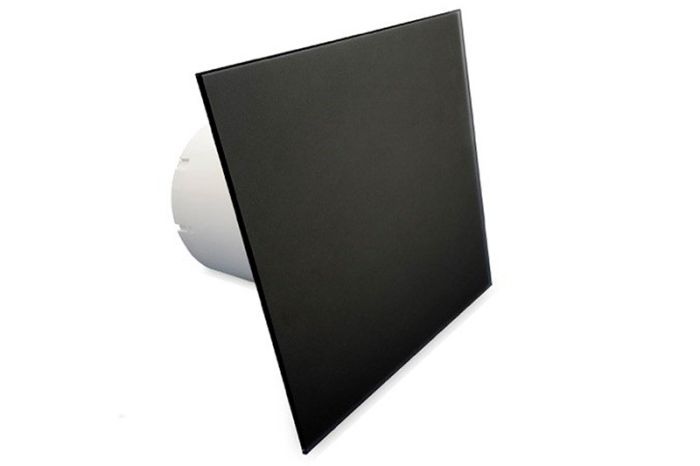 Voorfront designventilator/designrooster, Glas Vlak mat zwart Ø 125mm
