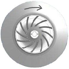 Let op: Rotodyne ventilatoren worden standaard linksdraaiend (LG) geleverd. Heeft u een standaard Rotodyne ventilator, dan heeft u vrijwel zeker een linksdraaiende waaier nodig. Zie afbeelding voor draairichting controle.