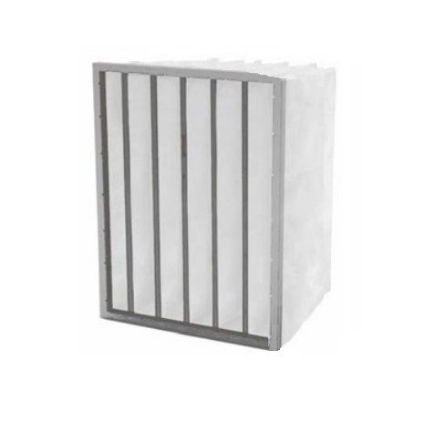 Specificaties : - Kader : Metaal - Medium : Synthetisch - Max. continue temp. : 80 °C - Max. rel. vochtigheid : 100% - Debiet m3/H : 2550 - Filteklasse : ePM10-55% volgens ISO16890 - Kleur medium : Wit - Maat: 288x892x360 - Zakkenfilter met synthetisch filtermedium Toepassing: - Fijn filtratie voor luchtbehandlingskasten/geurfilterkasten en voorfiltratie voor (H)EPA filters Voordelen: - Hoog stofhoudend vermogen - Lage drukval over het filter - Conische zelfdragende zakken - Toepasbaar binnen voedingsmiddelen bedrijven Eigenschappen: - Medium: Synthetisch met progressieve opbouw - Frame: Staal - Aanbevolen eindweerstand: 250Pa - Max. continue temperatuur: 80 gr. Celsius - Max. relatieve luchtvochtigheid: 100%